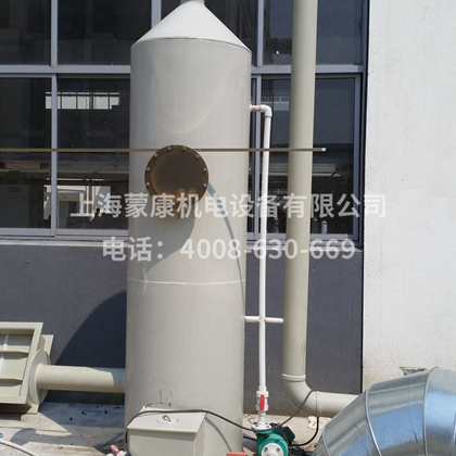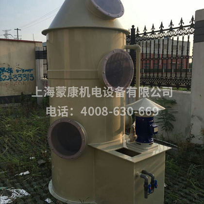 塔內(nèi)填料層作為氣液兩相間接觸構(gòu)件的傳質(zhì)設(shè)備;填料塔底部裝有填料支承板,填料以亂堆方式放置在支承板上。氣體從塔底(或一側(cè))送入,經(jīng)氣體分布裝置分布后,與液體呈逆流(或截流)連續(xù)通過填料層的空隙,在填料表面上,氣液兩相密切接觸進行傳質(zhì),待處理氣體經(jīng)傳質(zhì)作用進入循環(huán)液體中與塔筒體內(nèi)壁的水霧和水膜接觸而被水滴、水膜黏附捕獲,并隨筒壁不斷更新的水膜向下排出水洗塔,從而使含塵廢氣得以凈化排放,上升的氣體在塔上層除霧器作用進行除濕干燥后排放或者進入下道工藝。水洗塔底部設(shè)有循環(huán)水箱,通過循環(huán)水泵不斷將水循環(huán)送入塔內(nèi),根據(jù)水箱內(nèi)水質(zhì)情況定期更換清水或補水。